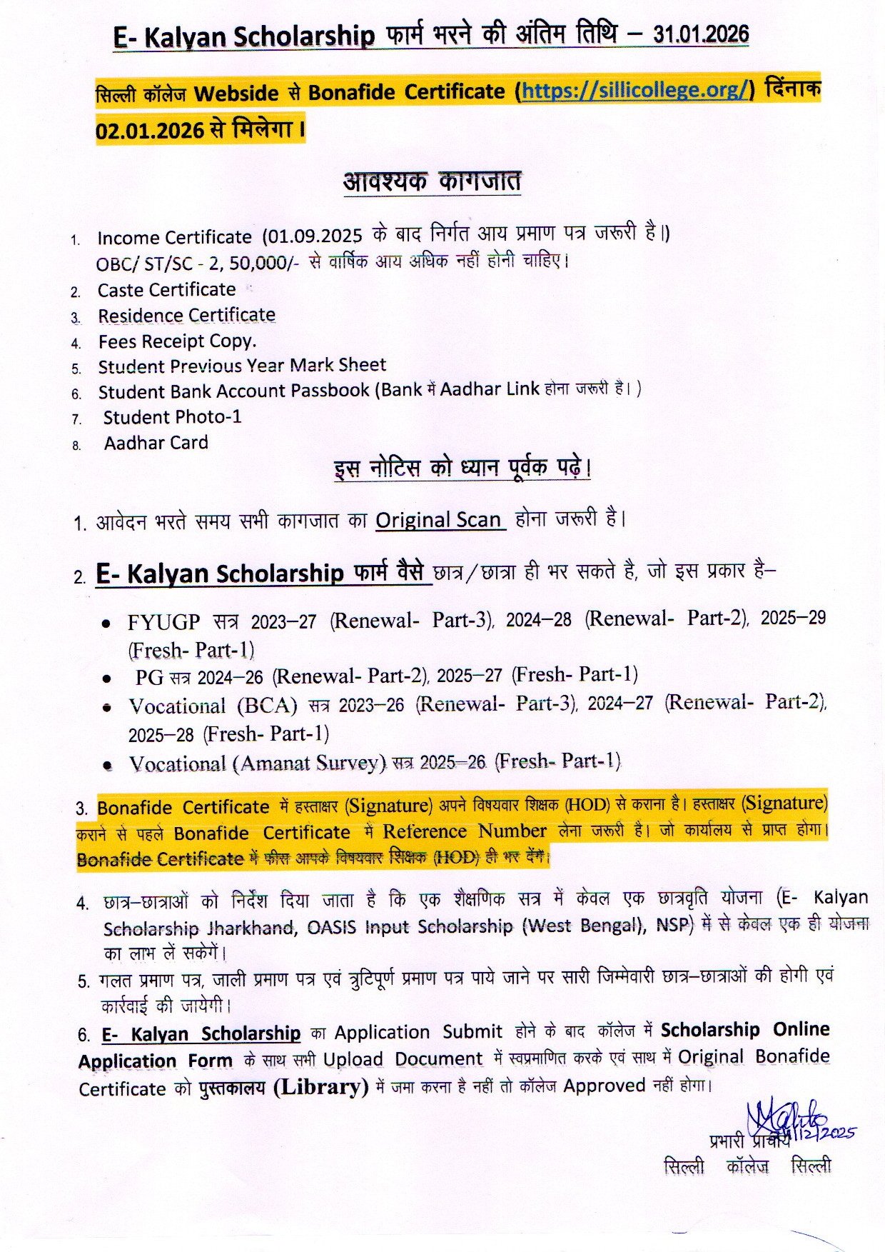 I am happy to go through the contents of this Prospectus and the Website of Silli College, sillicollege.org. I am sure that the college will continue to play a meaningful role in the competitive times ahead. Quality education comes through sincere commitments from the teachers, students, staff, and the community. Silli College, Silli continues with its rich legacy of providing affordable, value-based education in this part of the nation and bettering the lives of many promising students, particularly from the underprivileged and deprived sections of society. The College has gone a long way in its mission of providing affordable education .....